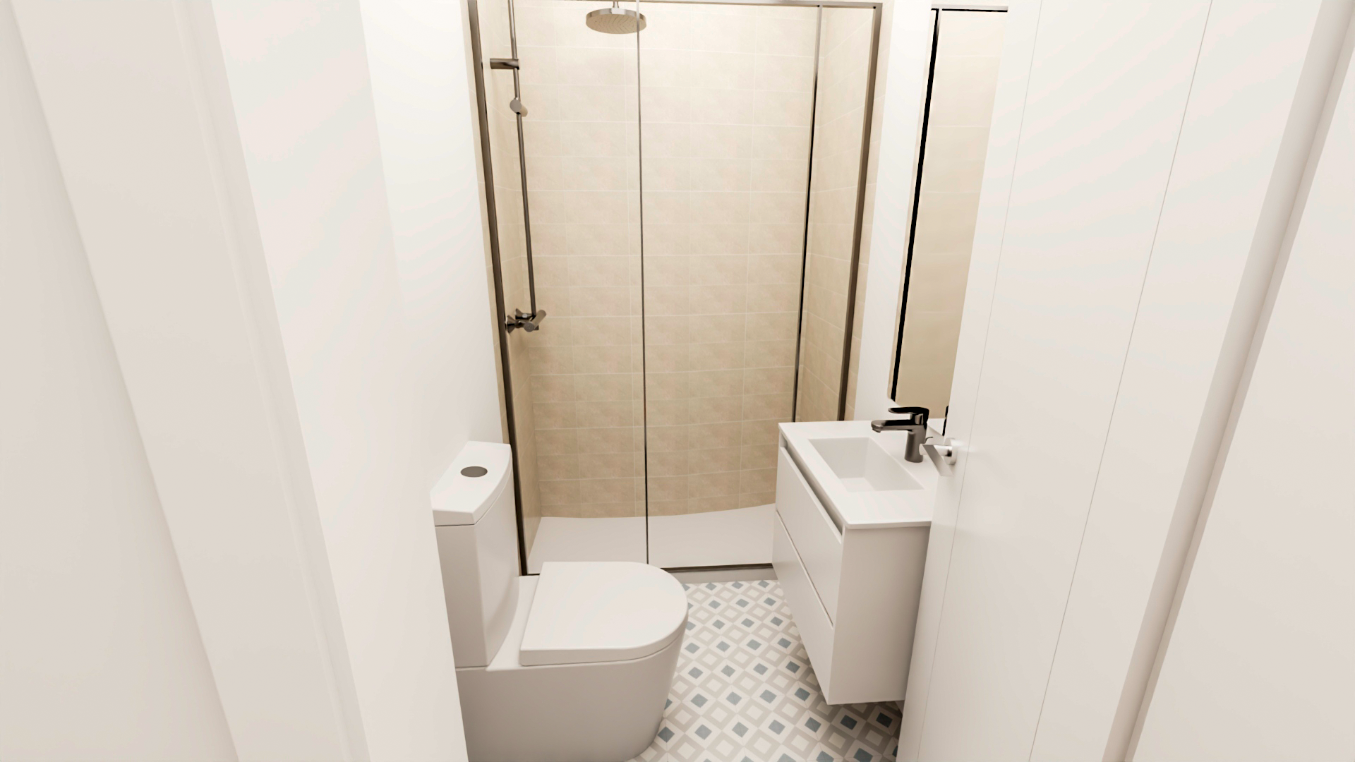 El bany es modern i funcional equipat amb plat de dutxa per una experiència de relaxació optima.
