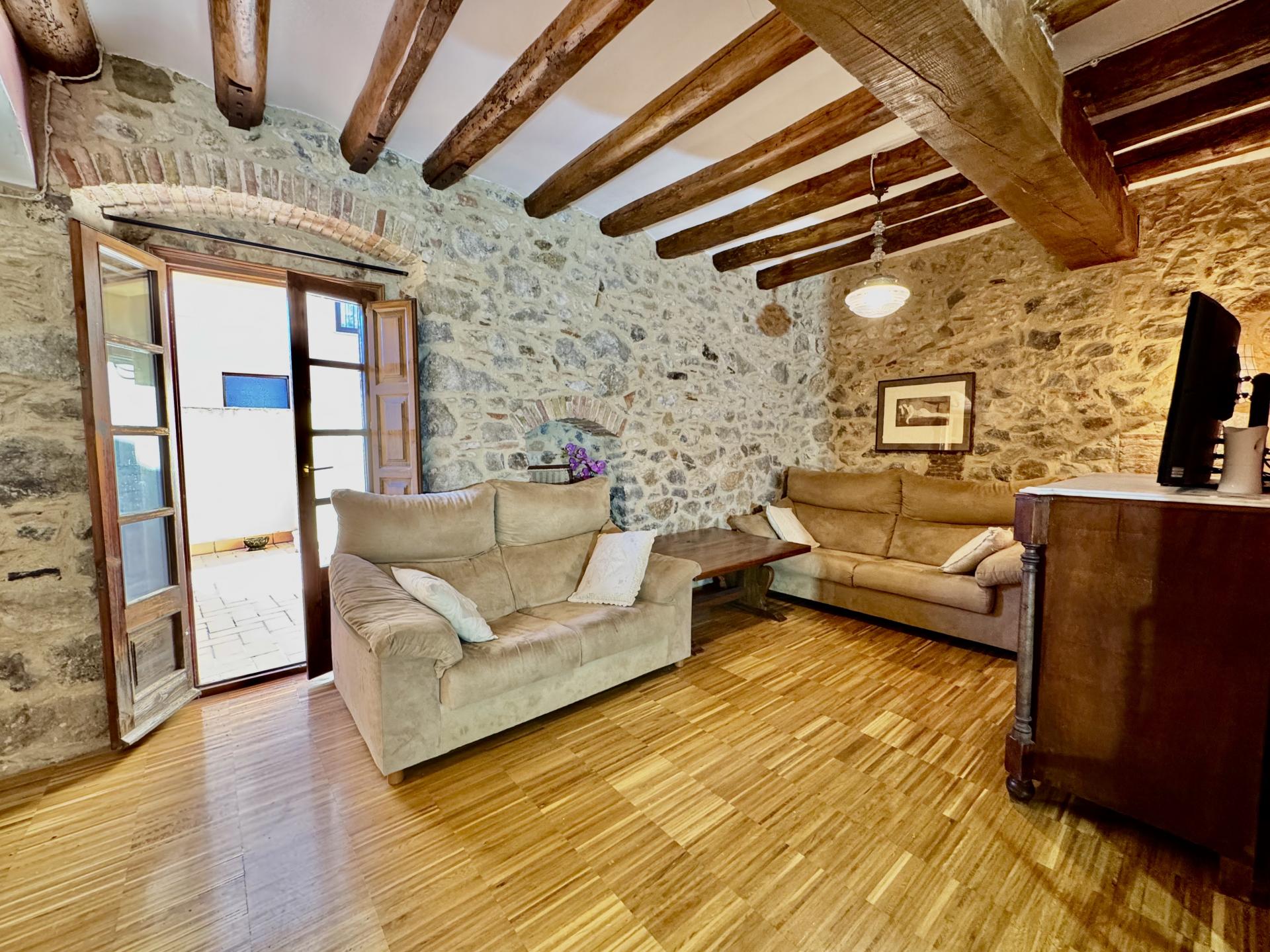 L habitatge conserva elements arquitectònics de gran valor, com la façana empedrada, els sostres amb bigues de fusta i els espais amplis i lluminosos que conviden a gaudir d una vida pausada, pròpia de l Empordà.